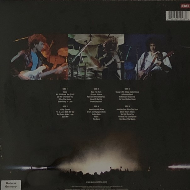 Tracklist obsahuje směs legendárních hitů — "We Will Rock You (Fast)", "Somebody to Love", "Under Pressure", "Bohemian Rhapsody" — i méně často hrajované kusy, sóla a energické jamy, které ukazují postup kapely i živou sílu každého člena. Pokud hledáte album, které není jen sbírkou hitů, ale opravdovým "oknem do minulosti" — koncertem, energií a legendou v jednom — tahle trojitá LP edice je právě to.